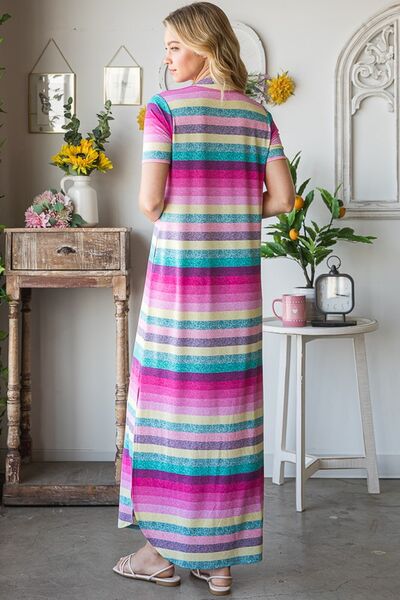 Heimish Full Size Striped Short Sleeve Maxi Tee Dress Plus Size