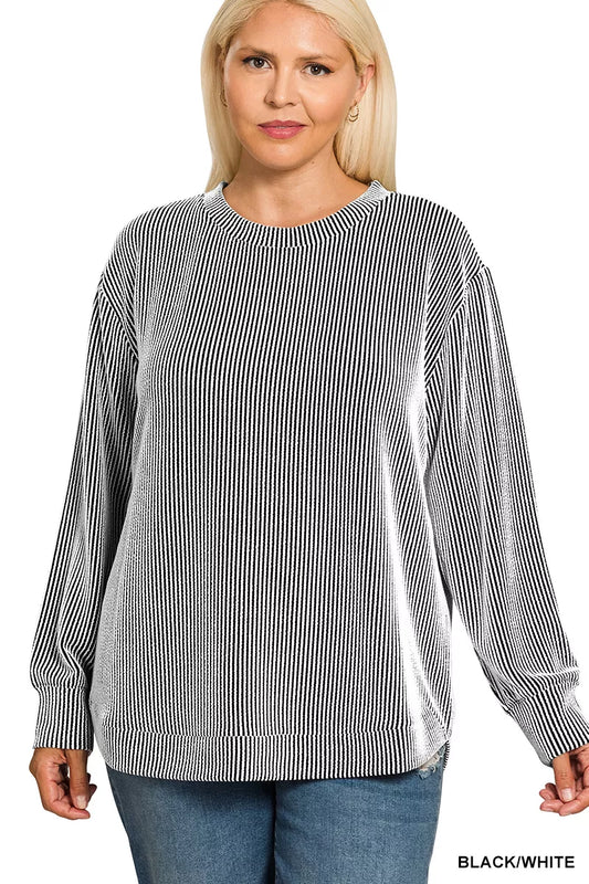 Zenana Full Size Raised Rib Round Neck Long Sleeve Top Plus Size