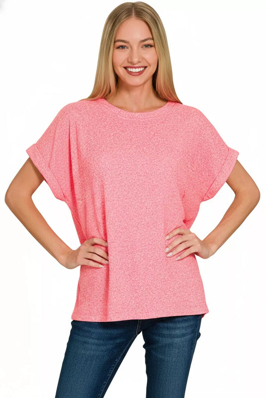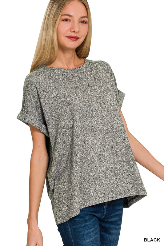 Zenana Soft Melange Hacci Short Sleeve Round Neck Top