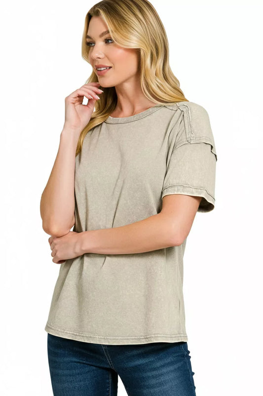 Zenana Acid Washed Round Neck T-shirts